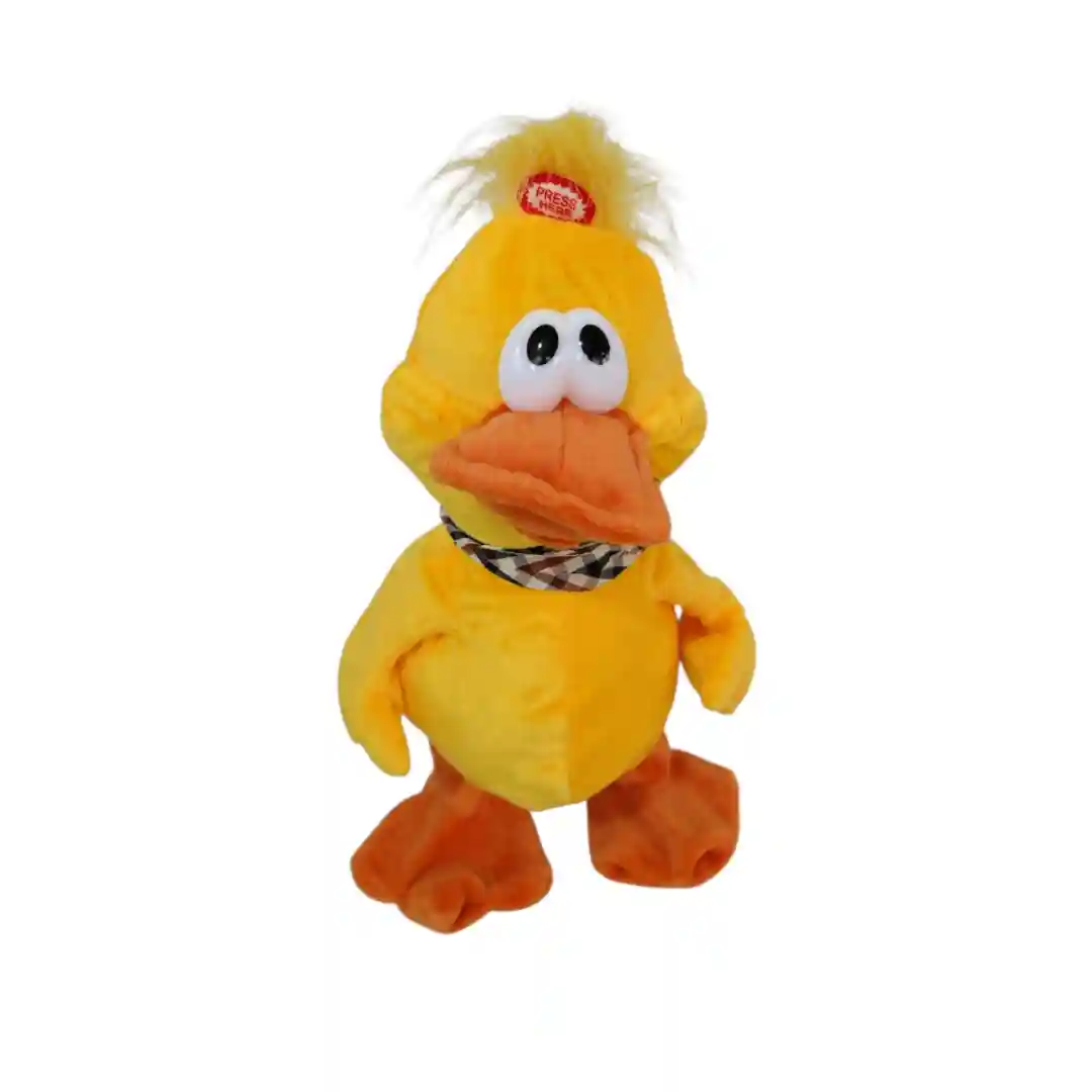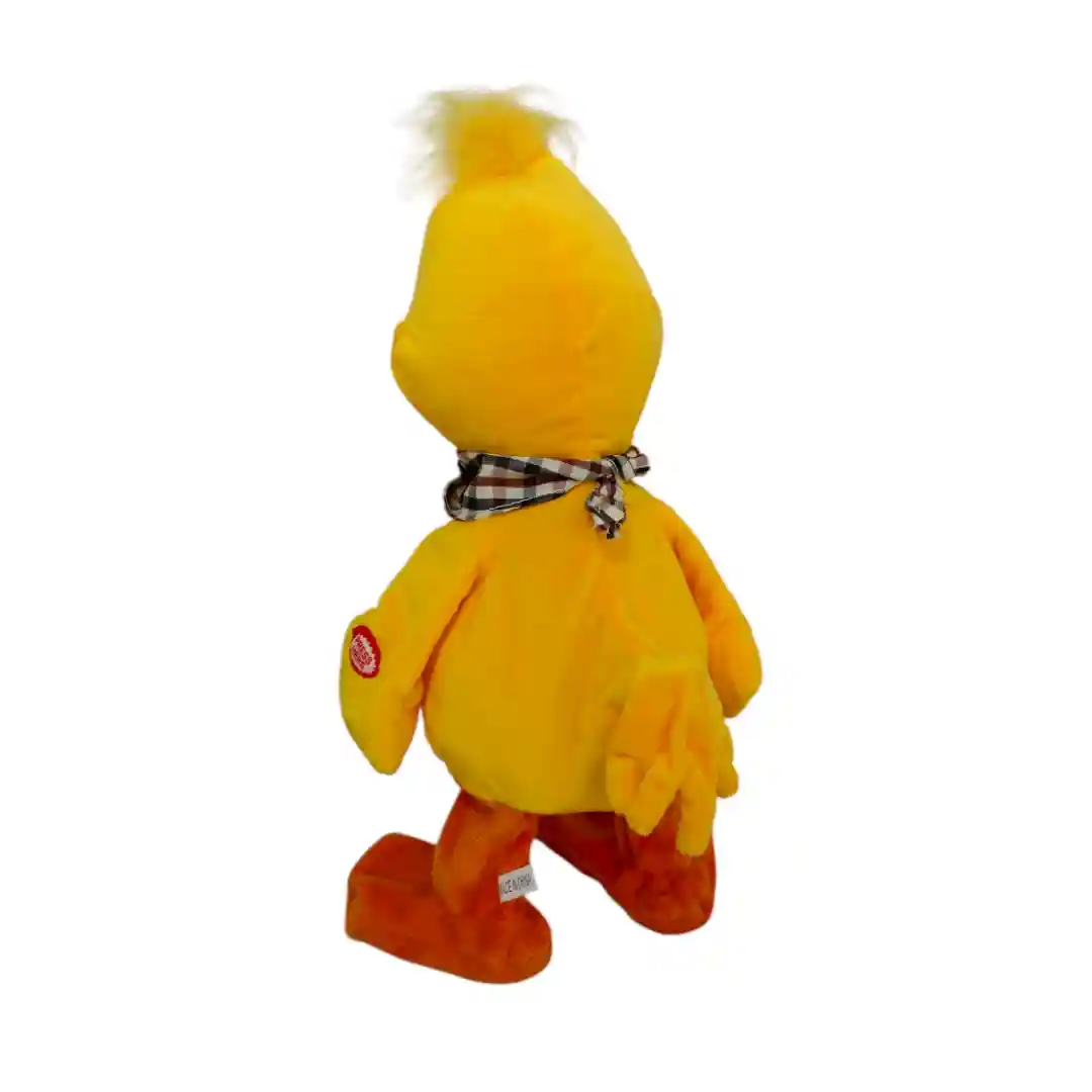 Pero lo que los hace realmente especiales es que son interactivos. Fíjate que en una de sus alitas tienen un botón rojo que dice «PRESS HERE». ¡Es su secreto para la diversión! Cuando lo presionas, estos peluches se activan, bailan y cantan. ¡Es un espectáculo completo! Verás cómo sus cuerpos se mueven de forma graciosa al ritmo de la música, con sus pies grandes y sus alas aleteando. Es un show de comedia en miniatura que divertirá a grandes y chicos.