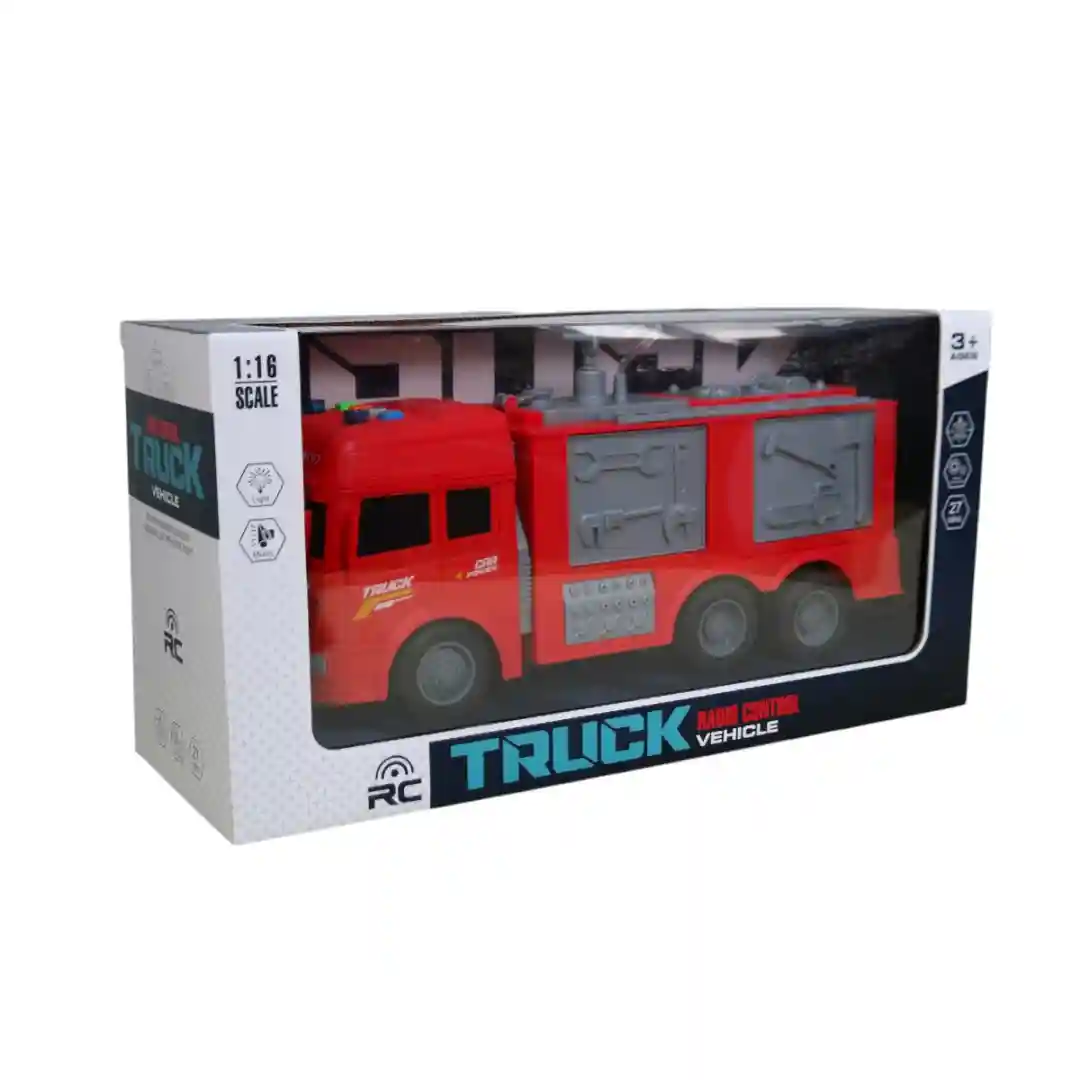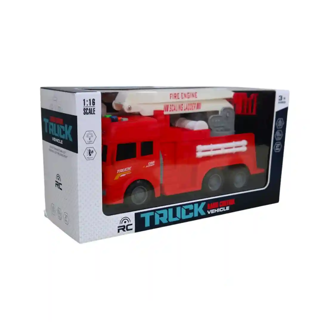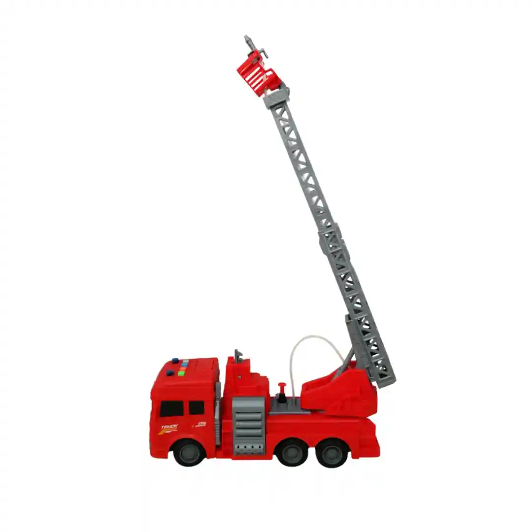 Este camión viene en dos modelos: uno con la escalera y otro con un compartimento de herramientas en los costados que se abren, ambos con un control remoto inalámbrico de 27MHz. El control tiene una antena y botones intuitivos para que los niños puedan dirigir el camión fácilmente hacia adelante, atrás, izquierda y derecha. Es un juguete perfecto para estimular la imaginación, la coordinación y el juego de roles en niños a partir de los 3 años, tal como se indica en el empaque.