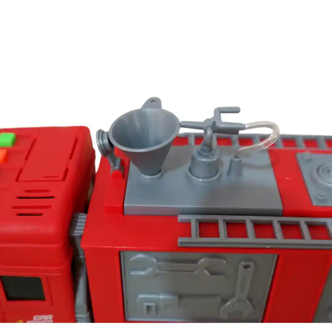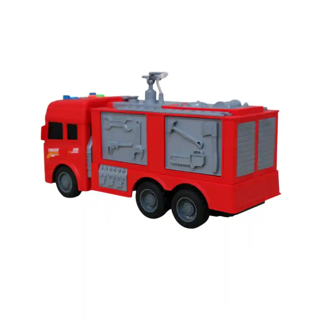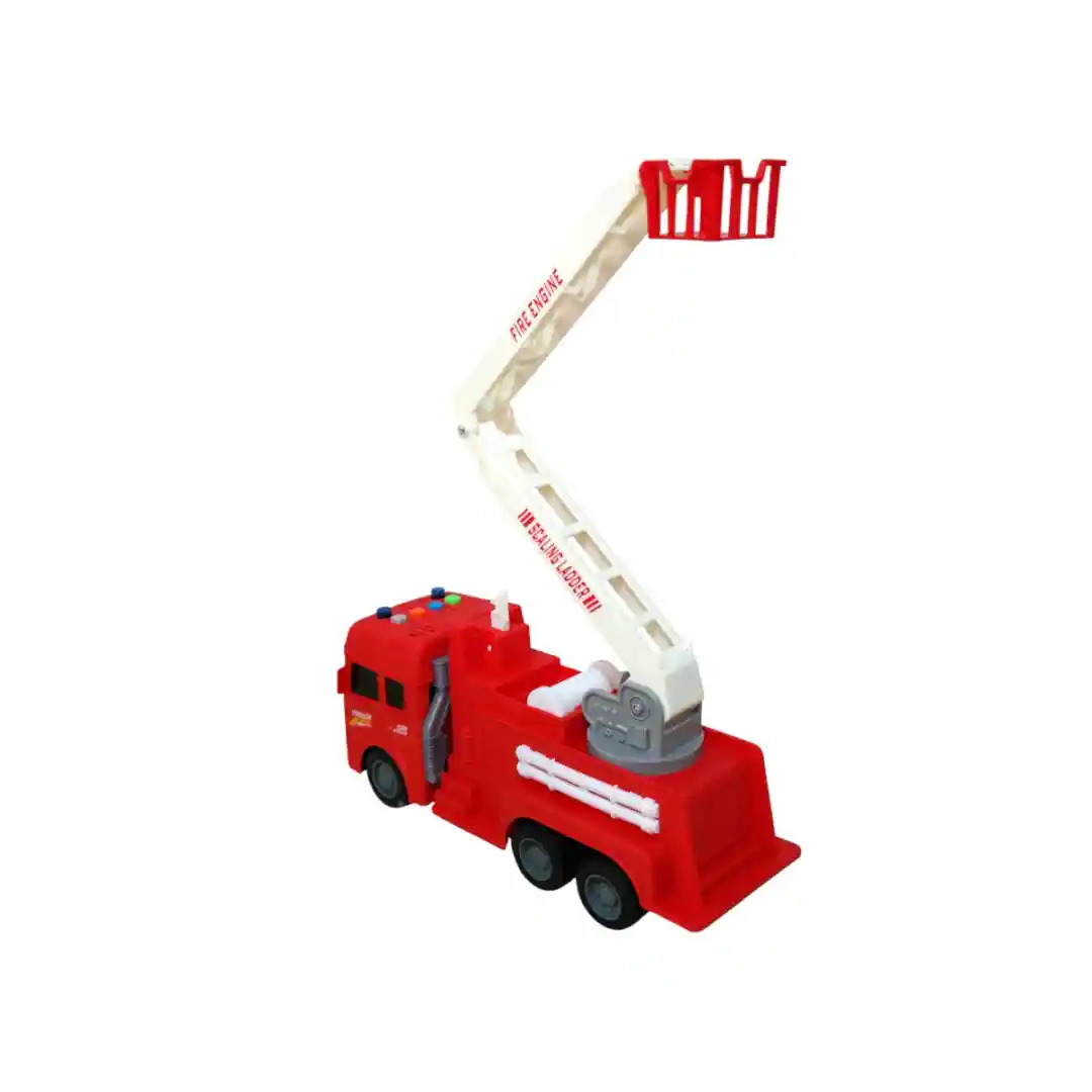 Este camión viene en dos modelos: uno con la escalera y otro con un compartimento de herramientas en los costados que se abren, ambos con un control remoto inalámbrico de 27MHz. El control tiene una antena y botones intuitivos para que los niños puedan dirigir el camión fácilmente hacia adelante, atrás, izquierda y derecha. Es un juguete perfecto para estimular la imaginación, la coordinación y el juego de roles en niños a partir de los 3 años, tal como se indica en el empaque.