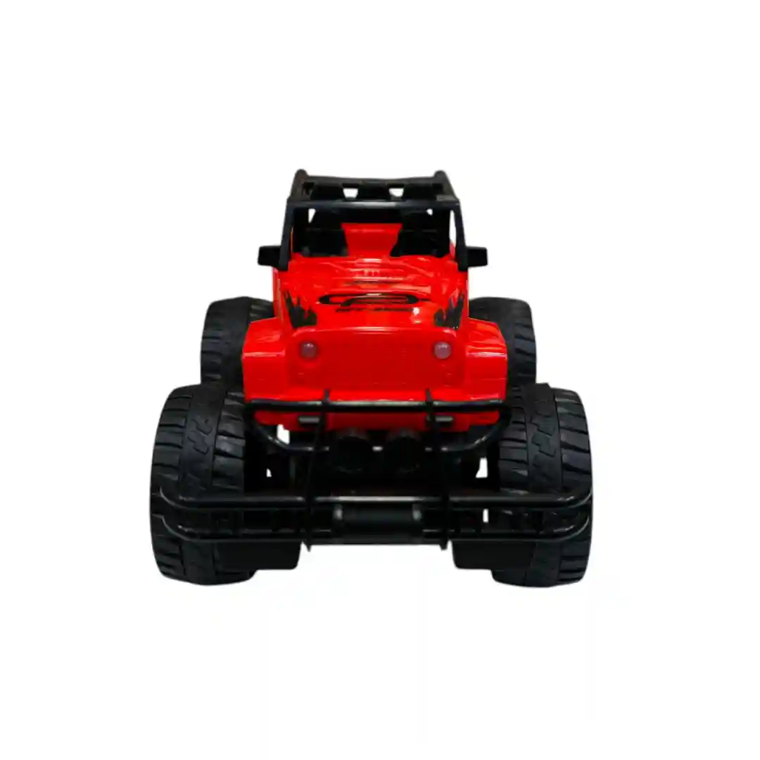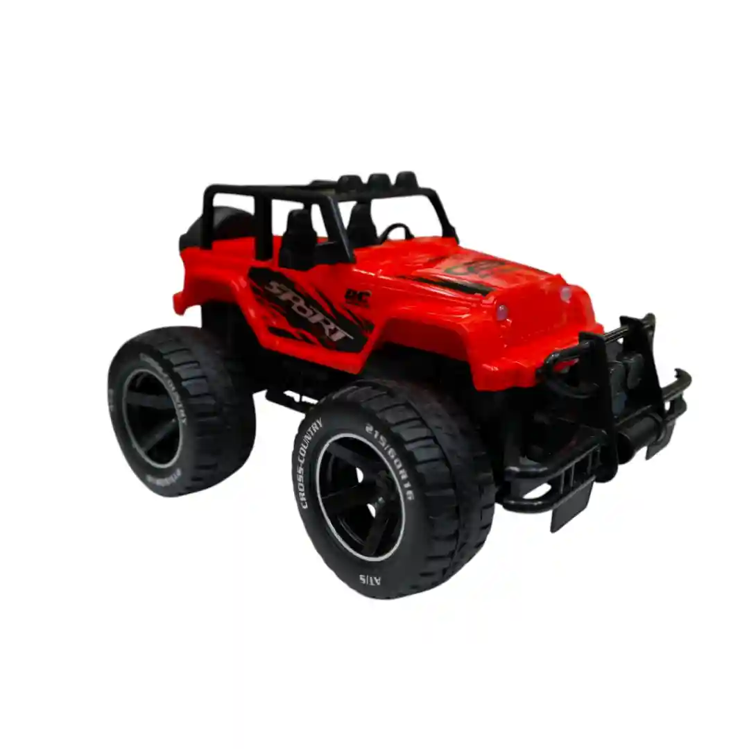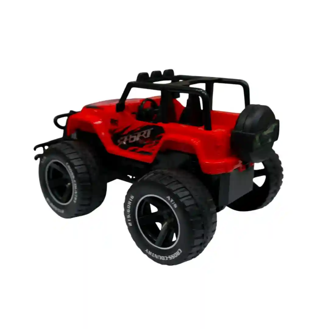 Este todoterreno es una réplica a escala 1:18, un tamaño ideal para jugar tanto en interiores como en exteriores. El diseño es muy atractivo y robusto, con un llamativo color rojo y detalles en negro que le dan un aspecto deportivo y agresivo. En las imágenes, se puede apreciar que la carrocería tiene gráficos tipo «street style» con la palabra «SPORT» y «RC», que indican su capacidad para las carreras.