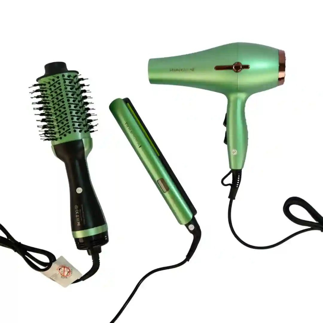 Si eres de las que ama cambiar de estilo pero le aterra dañar su cabello, este combo es tu salvación. El Kit RE-2523 no solo te da las herramientas para peinarte, sino que incorpora la tecnología de Microacondicionadores de Aguacate y Macadamia, diseñados para proteger tu melena del calor, eliminar el frizz y dejar un brillo espejo que notarás desde la primera pasada.