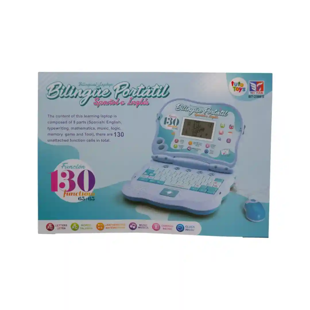 Con un diseño que imita un ordenador real en un atractivo color azul celeste y blanco, este portátil es la combinación ideal de tecnología lúdica y educación.