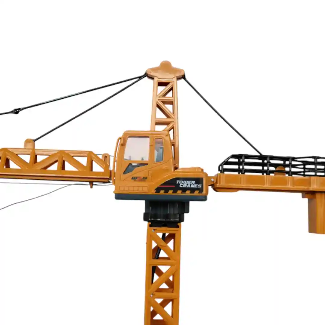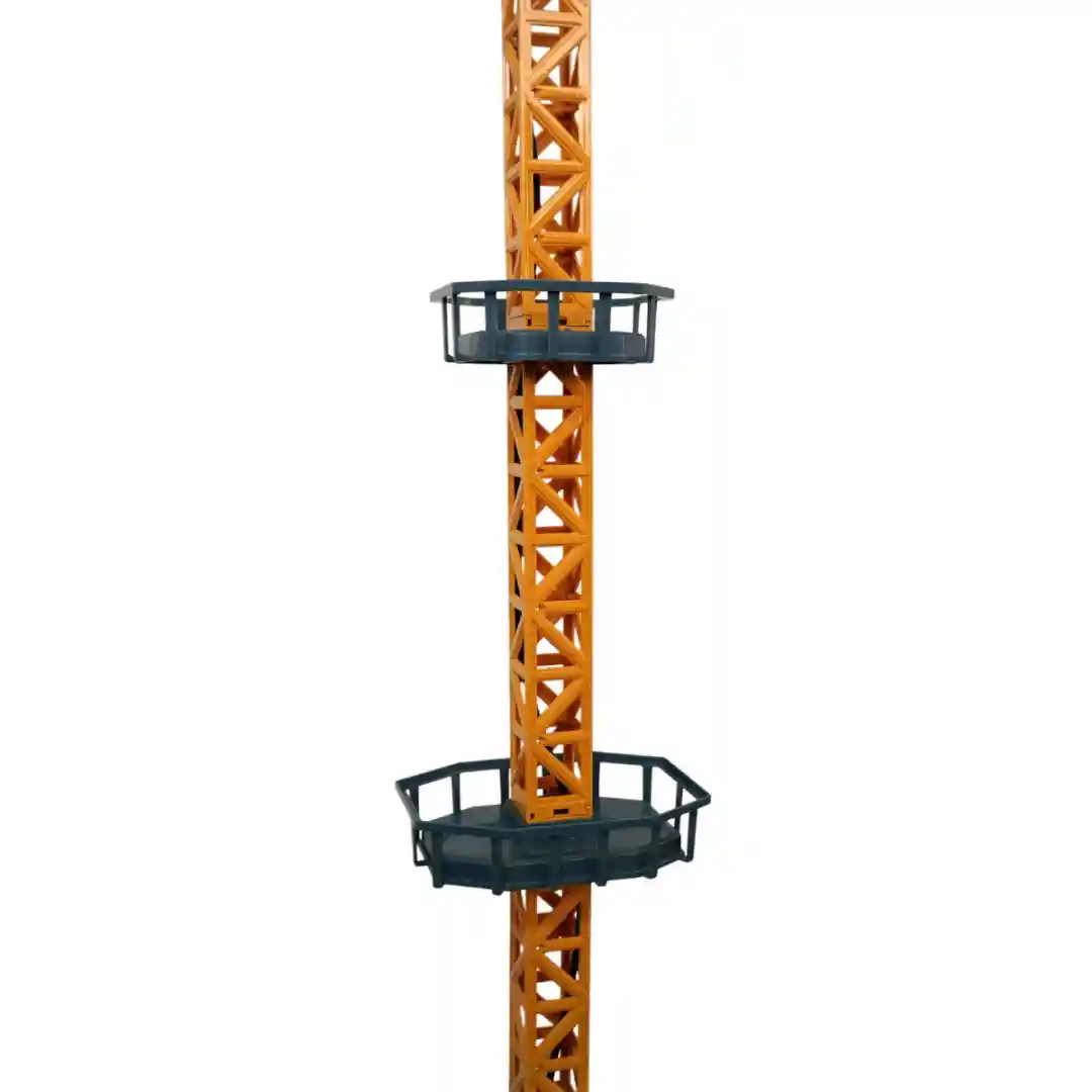 Esta grúa torre tiene un diseño super realista. Con un llamativo color amarillo-naranja que evoca a las grúas de verdad, su estructura enrejada le da una apariencia fuerte y profesional. La cabina, con la palabra «TOWER CRANES», está en el centro, lista para que el operador controle todo el movimiento. Se eleva a una gran altura, con plataformas de descanso para los pequeños constructores. La grúa es tan grande que la caja misma la describe como TOWER CRANE BIG, y su estructura se puede armar en varias partes.