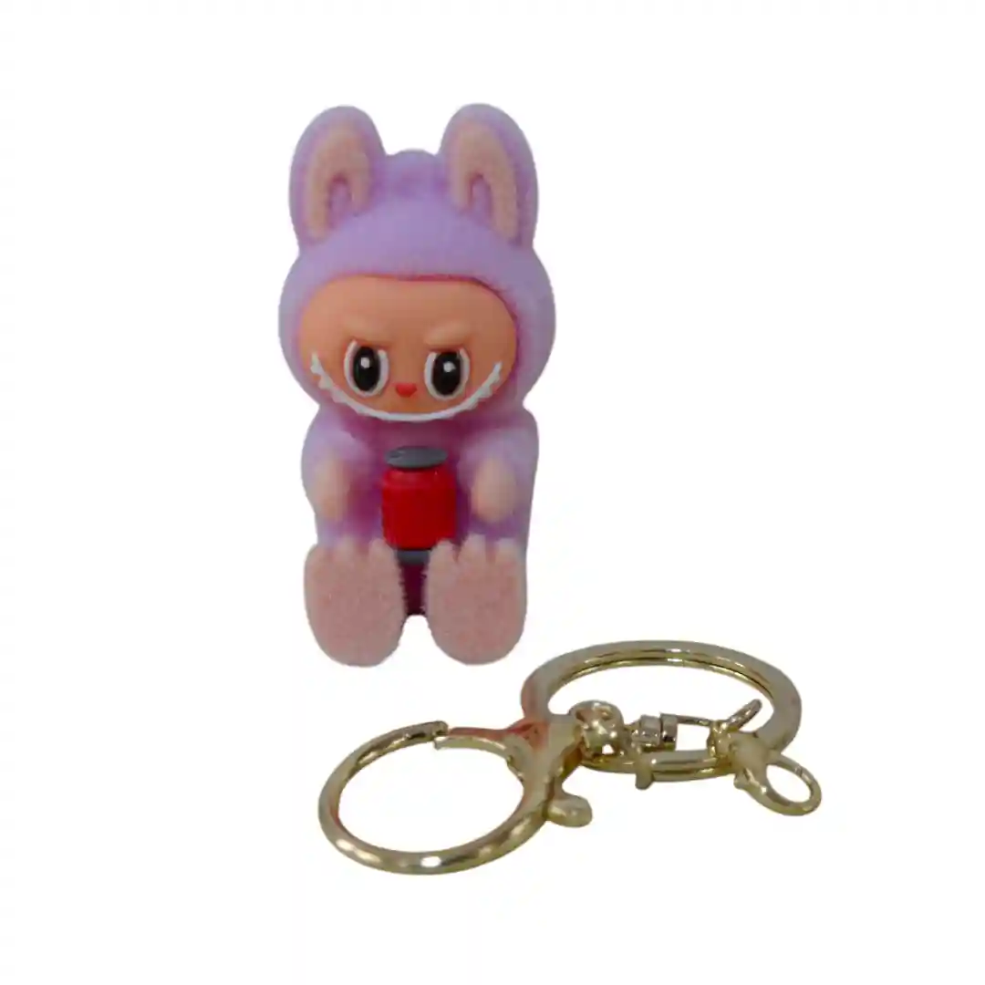 Estas figuras no son solo bonitas, también son prácticas. Cada una viene con un llavero de metal para que puedas llevar a tu Labubu favorito a todos lados, ya sea en tus llaves, en tu bolso o en tu mochila. El diseño «Vinyl Face» le da un toque distintivo a la figura, y el acabado de algunas, como la figura lila, es flocado (como una textura aterciopelada), lo que las hace aún más especiales.