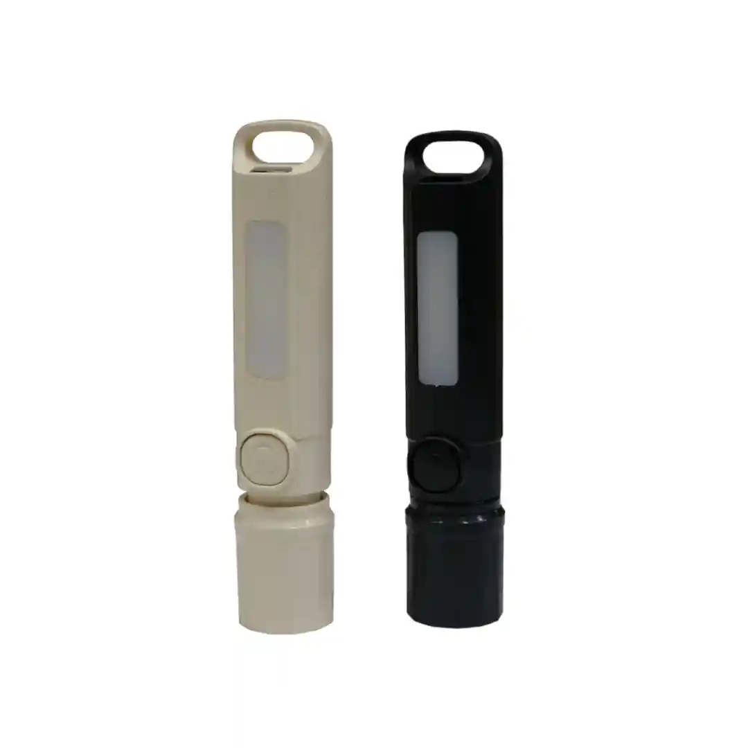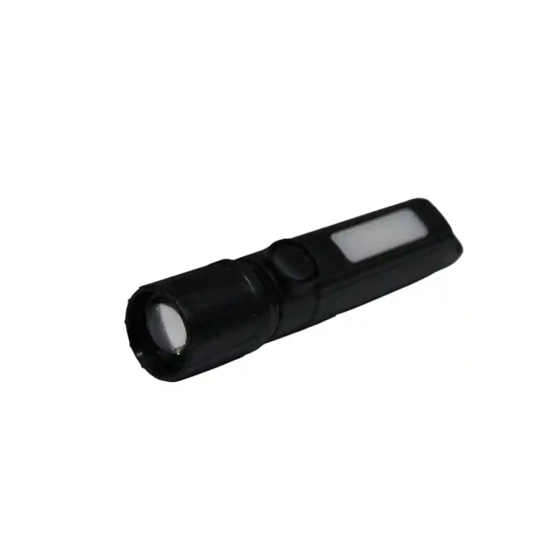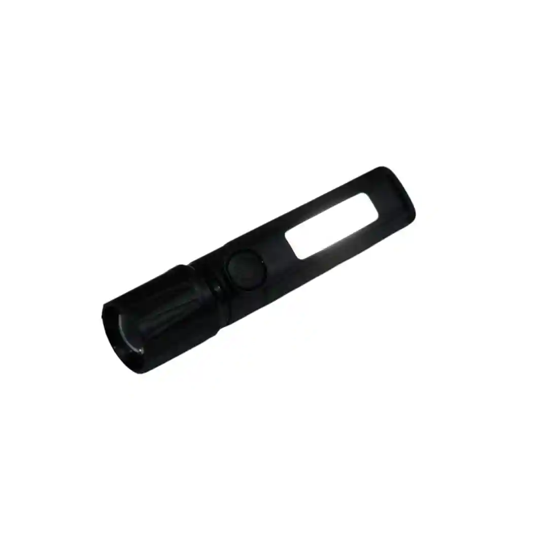 Como puedes ver en las imágenes, esta linterna tiene un diseño moderno y minimalista en un llamativo color negro con detalles en color azul. Su característica principal es que es recargable, lo que te ahorra dinero en pilas y te permite tenerla siempre lista para usar. En la parte frontal, tiene un foco LED de alta potencia que te dará una luz brillante y clara en la oscuridad.