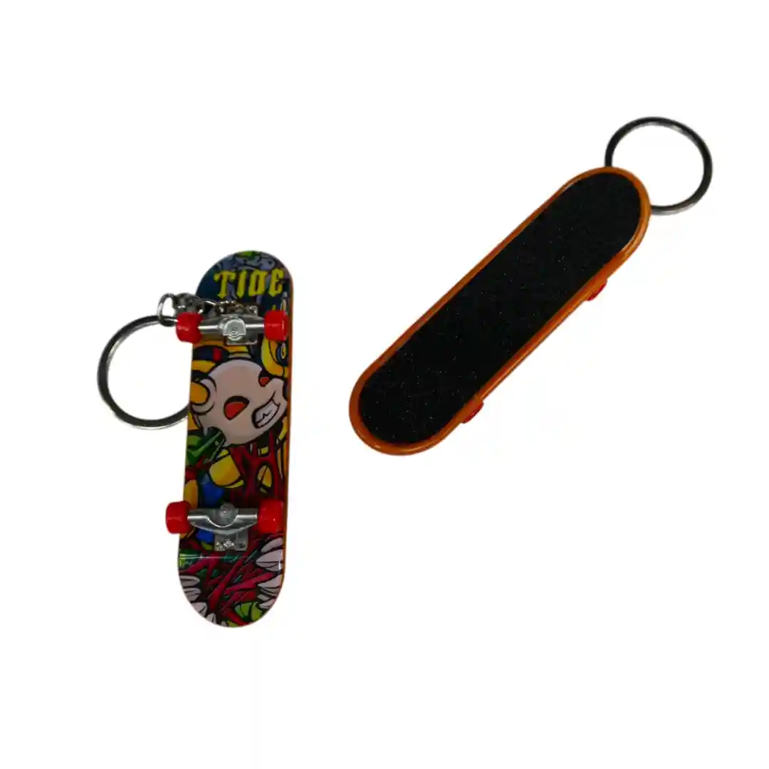 Gran variedad de diseños gráficos: La parte inferior de la patineta es donde la creatividad se desata. Cada llavero viene con un diseño gráfico diferente y llamativo, lleno de colores vivos y personajes de estilo cómic y graffiti. Desde un monstruo verde con gafas hasta calaveras y diseños abstractos, hay una patineta para cada personalidad. ¡Son tan variados que querrás coleccionarlos todos!