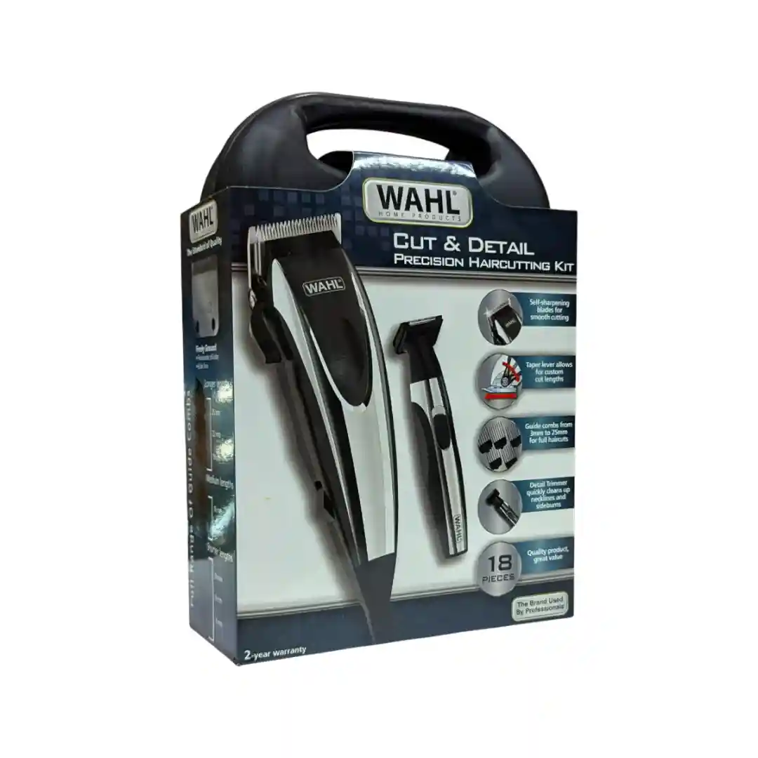 Diseño Clásico y Ergonómico: Presenta la forma tradicional y robusta de las máquinas WAHL. El cuerpo (aparentemente de plástico resistente en color gris o negro) está contorneado para un agarre firme y seguro, lo cual es esencial para maniobras de precisión y uso prolongado.