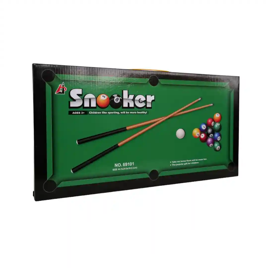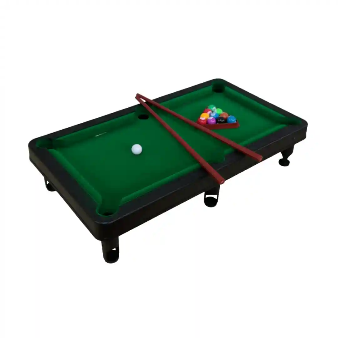 Tacos de Billar: Se incluyen dos tacos de billar de juguete, con puntas negras y el cuerpo en un color que simula madera clara, listos para que dos jugadores se enfrenten cabeza a cabeza.