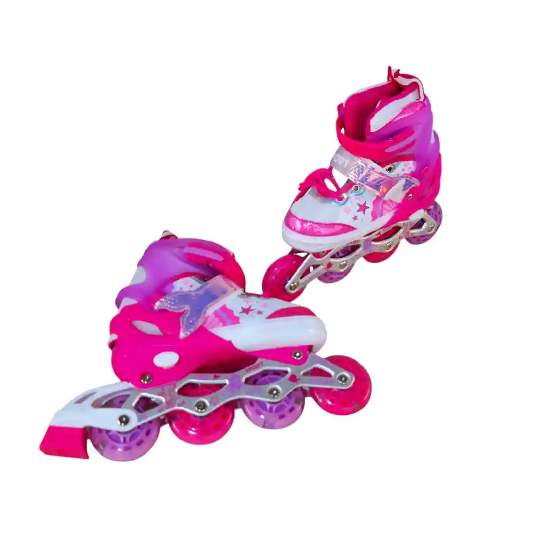 Este set es ideal para que las niñas se inicien en el mundo del patinaje o para aquellas que ya tienen algo de experiencia. A primera vista, los patines son un espectáculo visual: su diseño en tonos rosas vibrantes, blancos y toques brillantes con estrellas es simplemente encantador. ¡A cualquier niña le fascinará su diseño! Pero no solo son bonitos, están diseñados para ser robustos y seguros. Las ruedas, que tienen un divertido toque de colores, son de alta calidad, y la estructura del chasis se ve bastante sólida, lista para aguantar muchas horas de diversión y práctica.