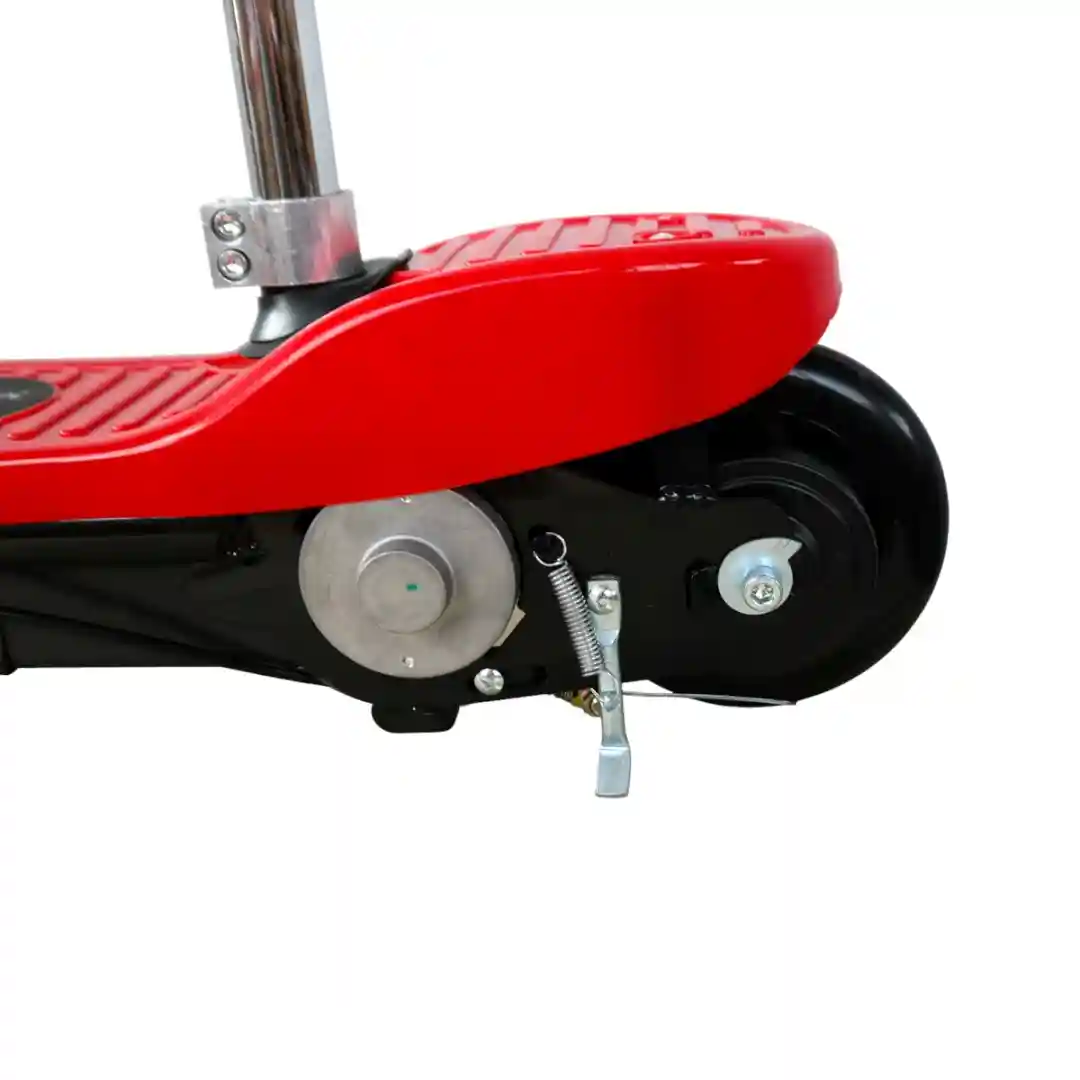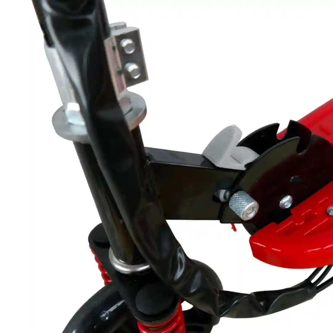 Diseño Tipo Scooter Eléctrico Moderno: La estructura general es robusta y elegante, con un diseño futurista y deportivo. El cuerpo del scooter es de un metal resistente, lo que sugiere durabilidad y una base de soporte sólida.