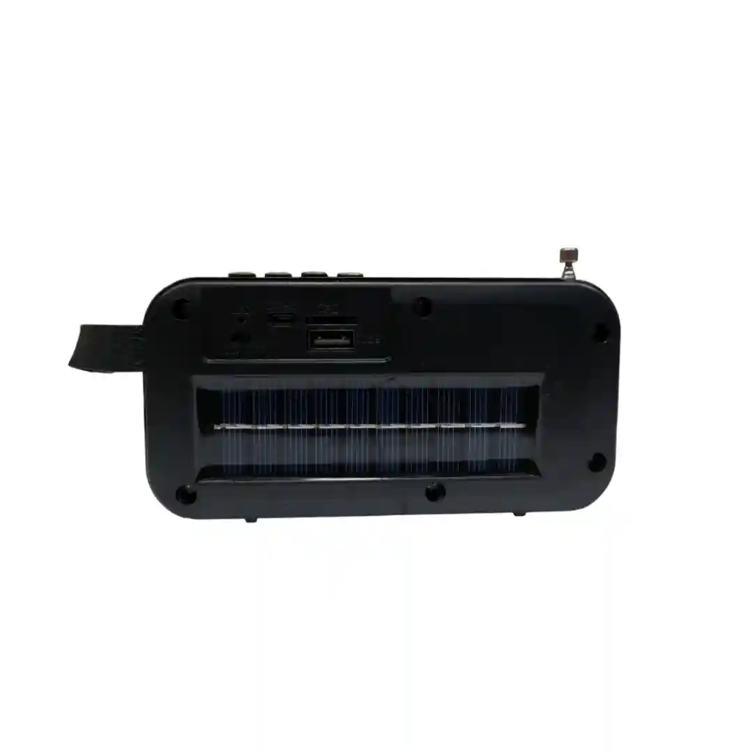 Este radio es un verdadero todoterreno. En el empaque se destaca su capacidad de carga con «Solar Panel Charge» (carga con panel solar), lo que significa que puedes cargarlo simplemente exponiéndolo al sol. Pero eso no es todo, también tiene la opción de cargarse a través de un «Charging Cable» (cable de carga) para que nunca te quedes sin energía.