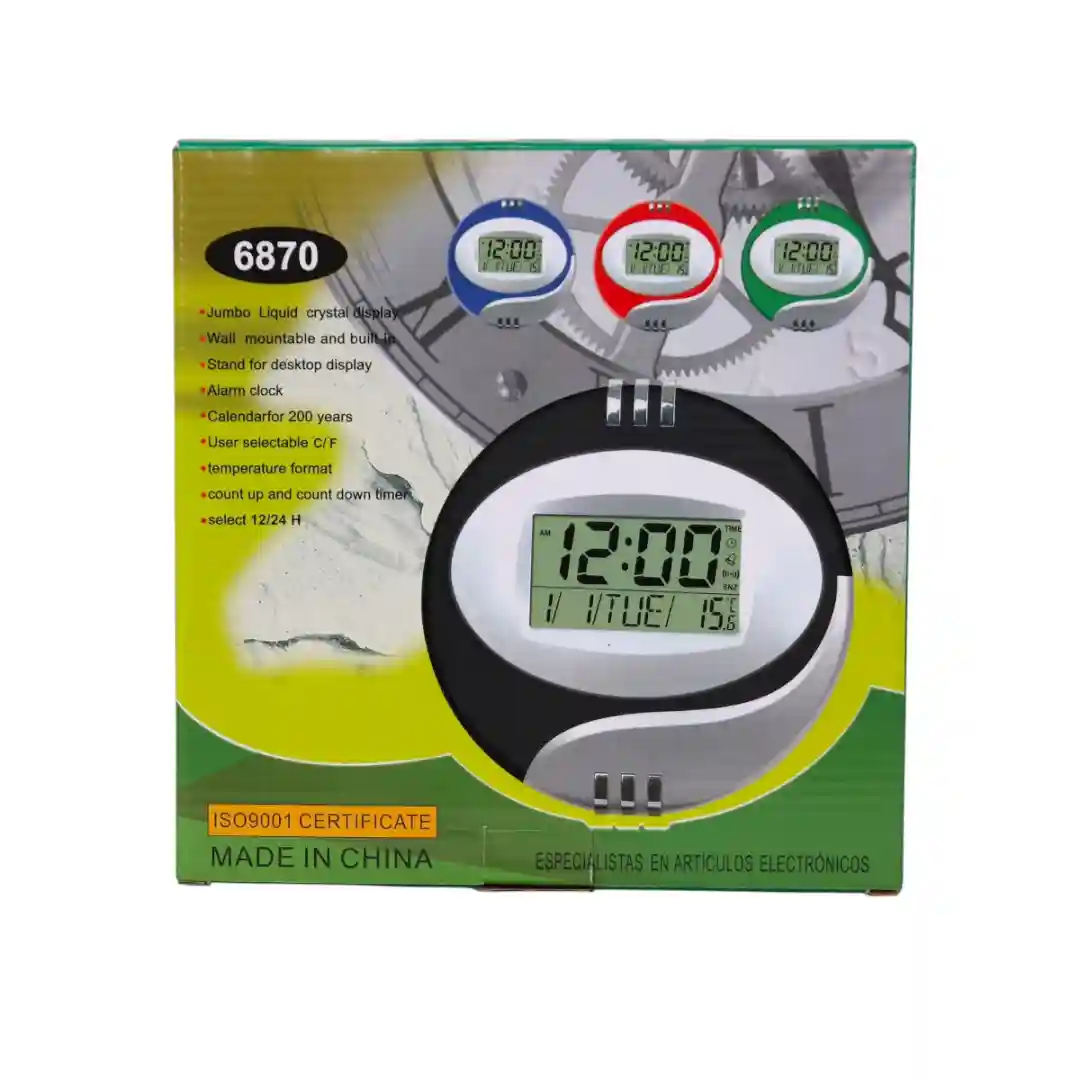 El 6870 es mucho más que un simple indicador de tiempo. Cuenta con un despertador para que no vuelvas a quedarte dormido, un calendario que abarca 200 años para que siempre sepas la fecha exacta, y una función de cuenta regresiva y cuenta ascendente (count up and count down timer), ideal para controlar tiempos en la cocina, tus rutinas de ejercicio o proyectos de trabajo.