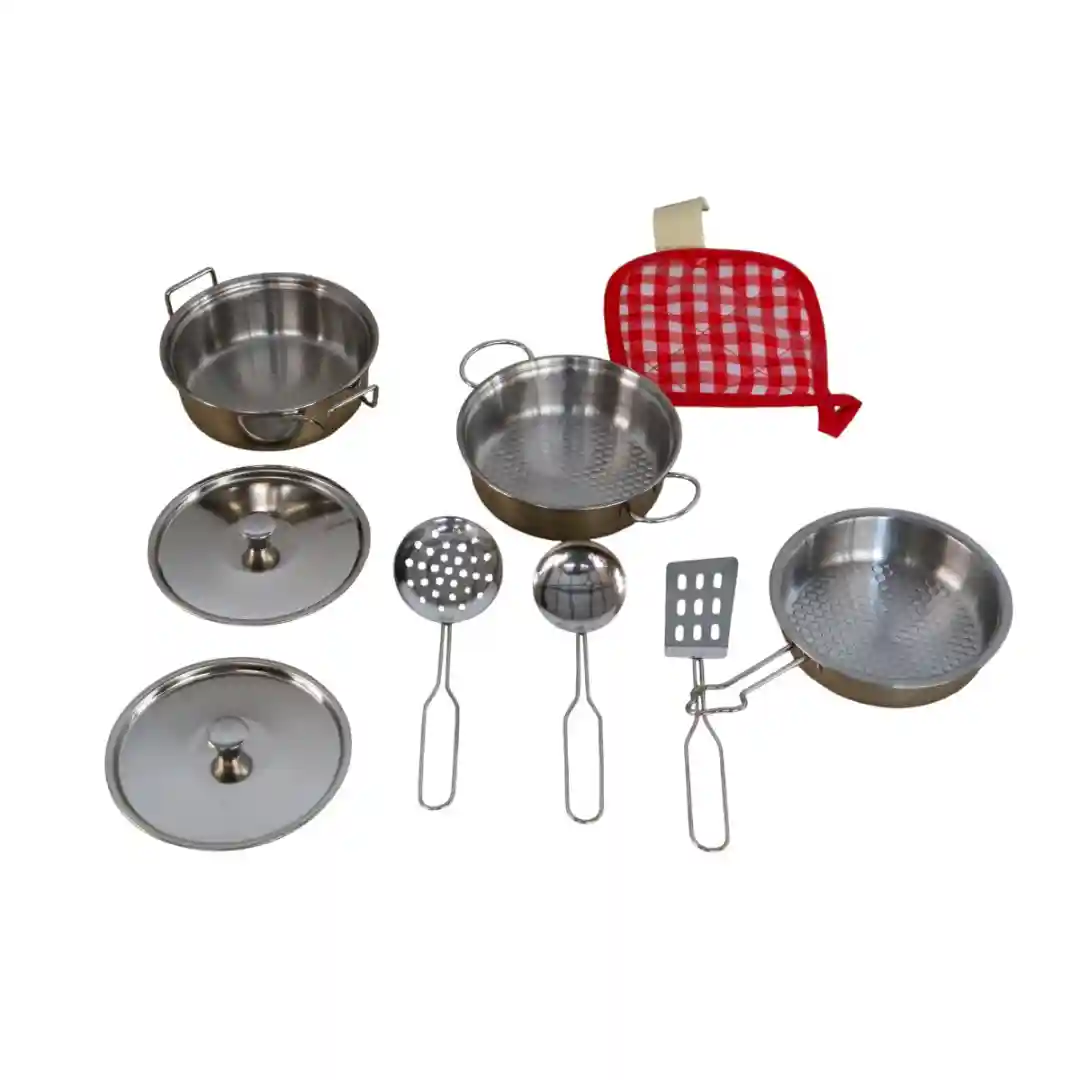 En primer lugar, la calidad salta a la vista. Este set está hecho de acero inoxidable de alta calidad, lo que significa que es súper resistente y duradero. No hay riesgo de que se doblen o se abollen fácilmente, lo que lo hace perfecto para las manos de los niños más activos. Además, su acabado brillante es un toque de realismo que les encantará. ¡Es como tener una cocina de chef en miniatura!