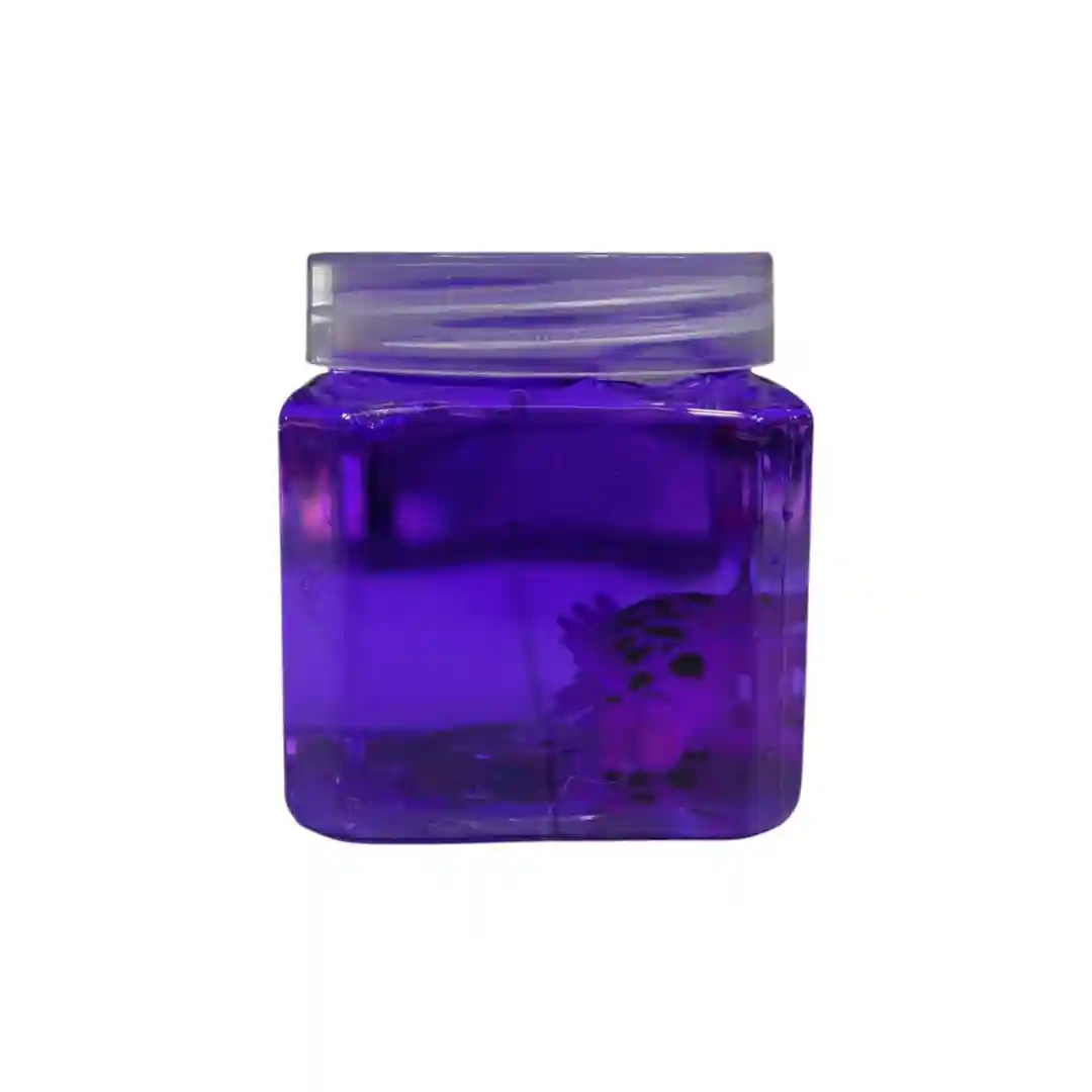 Pero lo que realmente hace especial a este producto es la sorpresa que esconde en su interior. Dentro del slime azul, podemos ver una figurita de un dinosaurio de color naranja, ¡parece que está nadando en el mar! En el slime morado, se asoma la silueta de otro dinosaurio, aunque no se distingue con total claridad, la emoción de descubrirlo es parte de la diversión. ¡Es como un pequeño tesoro prehistórico esperando a ser desenterrado!